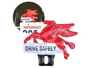 Vintage Parts license plate toppers are ideal for hot rod, street rods, rat rods, and customs. Made from sheet metal, stamped with precision then painted to bring out the details. Can be mounted on top or bottom of the frame. Includes slotted mounting hole for easy installation. This item is made to mount to the top of your license plate and will accept a 1/4