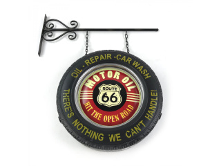 Route 66 Double Sided Light Up Hanging Tire Metal Sign