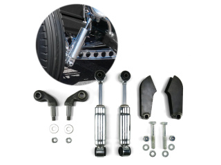 Vintage Shock Kits feature DuraCushion shocks for the smoothest riding solid axle setup around. Each kit offers laser cut brackets for a perfect fit. Comes with 2 shocks, necessary mounting brackets and hardware.