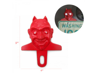 Vintage Parts license plate toppers are ideal for hot rod, street rods, rat rods, and customs. Made from a cast alloy metal and then painted to bring out the details. Can be mounted on top or bottom of the frame. Unit included slotted mounting hole for height adjustment.